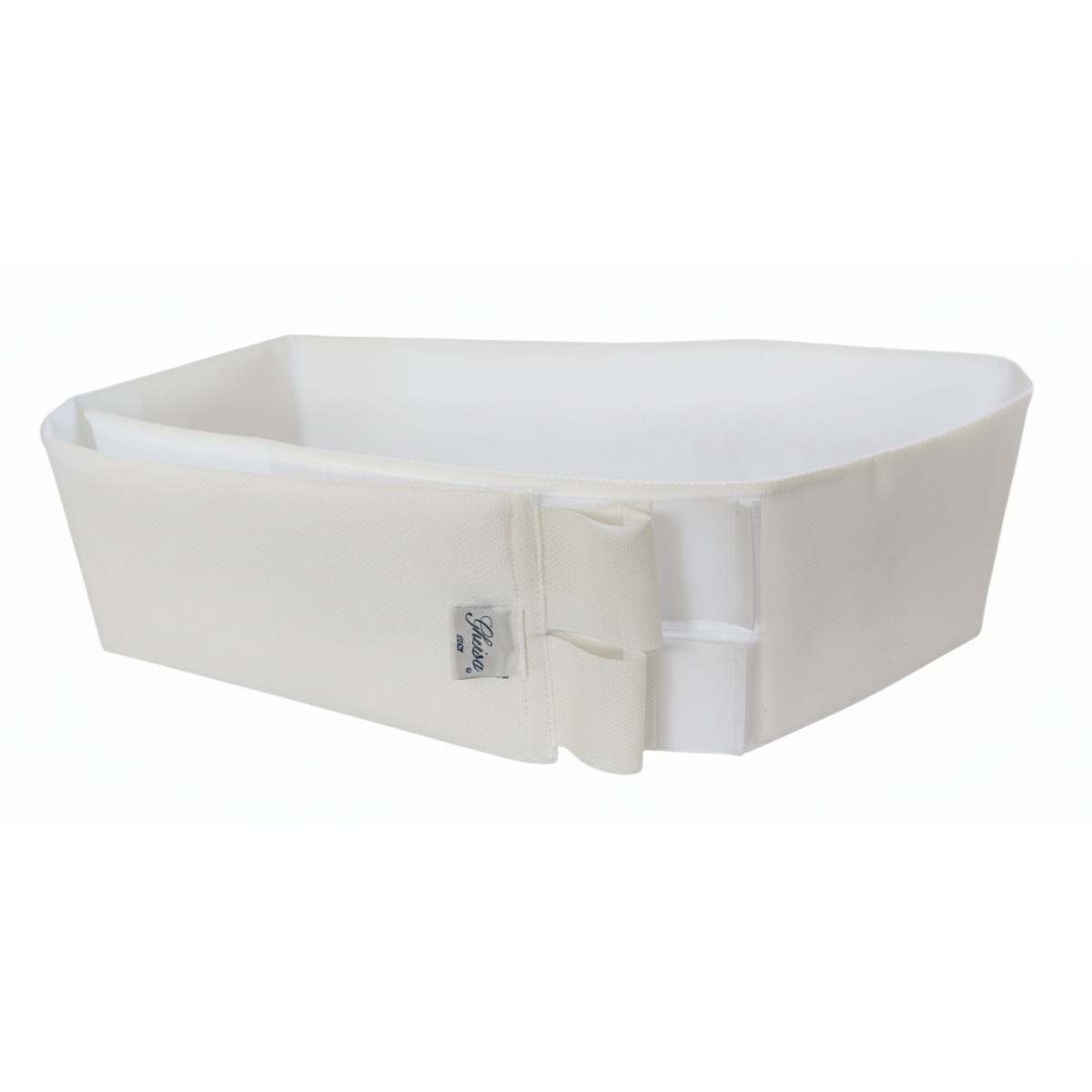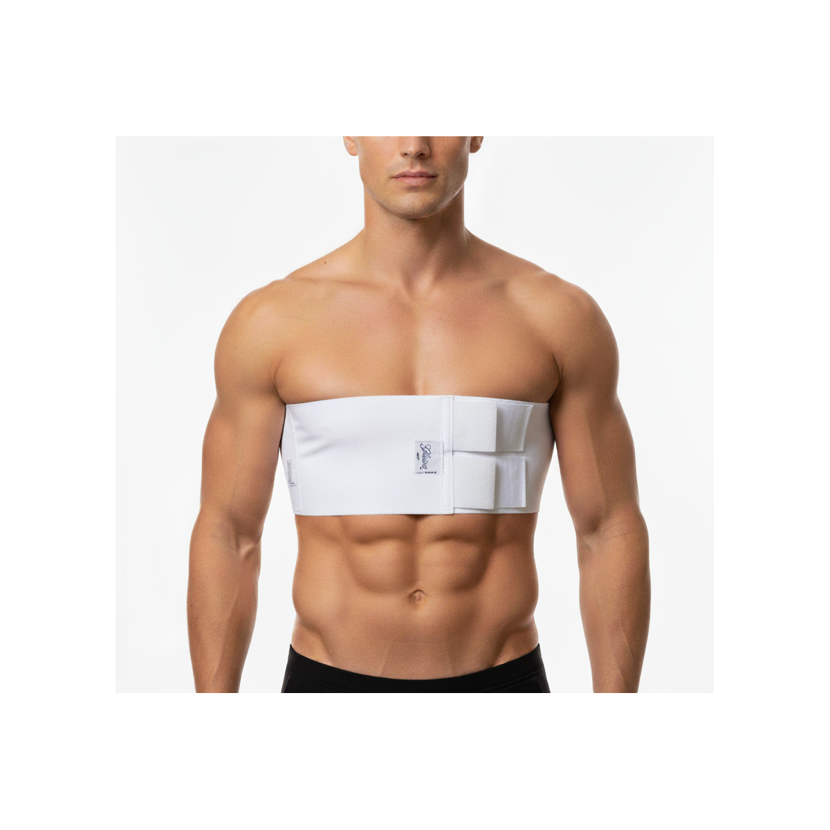 Fascia in tessuto non tessuto (TNT) da utilizzarsi subito dopo un intervento chirurgico che abbia interessato il torace. Consente la respirazione del Paziente con una buona contenzione del post-intervento delocalizzando il dolore. Questo avviene grazie al connubio materiale non elastico come il TNT e la particolare chiusura a due anelli linguette di TNT con elastico incorporato.